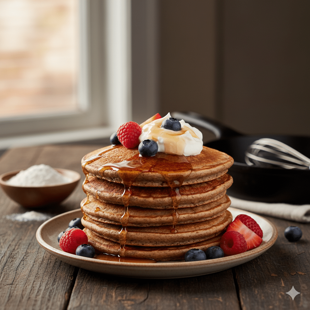 I pancake con farina di grano saraceno sono una colazione semplice e nutriente, naturalmente senza glutine.