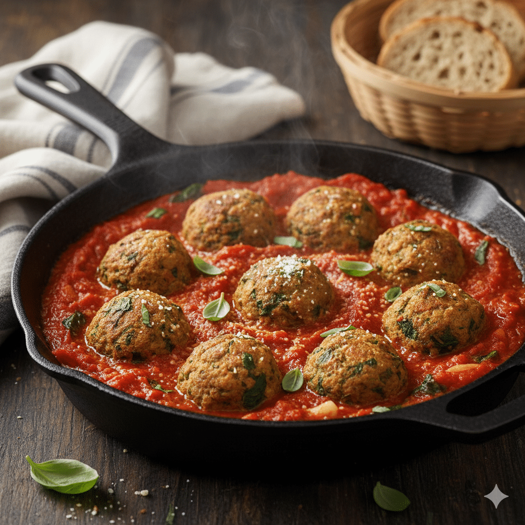 Le polpette di ceci e spinaci al sugo sono un'alternativa vegetariana e senza glutine, gustosa e nutriente.